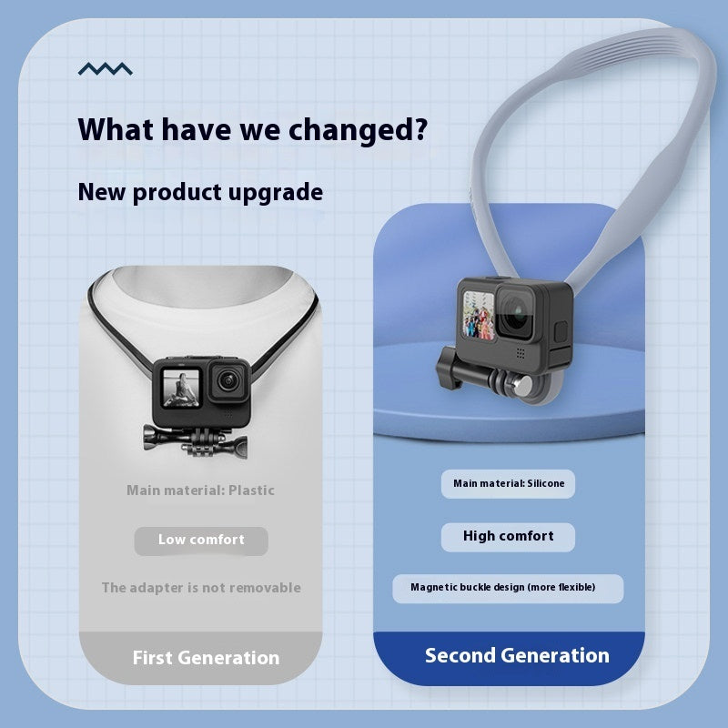 The Magnetic GoPro Neck Mount is designed for creators, vloggers, and adventurers who want to capture a true first-person perspective. This wearable silicone bracket allows you to film completely hands-free while maintaining a stable and natural viewing angle. Perfect for outdoor activities, travel videos, tutorials, and everyday vlogging.