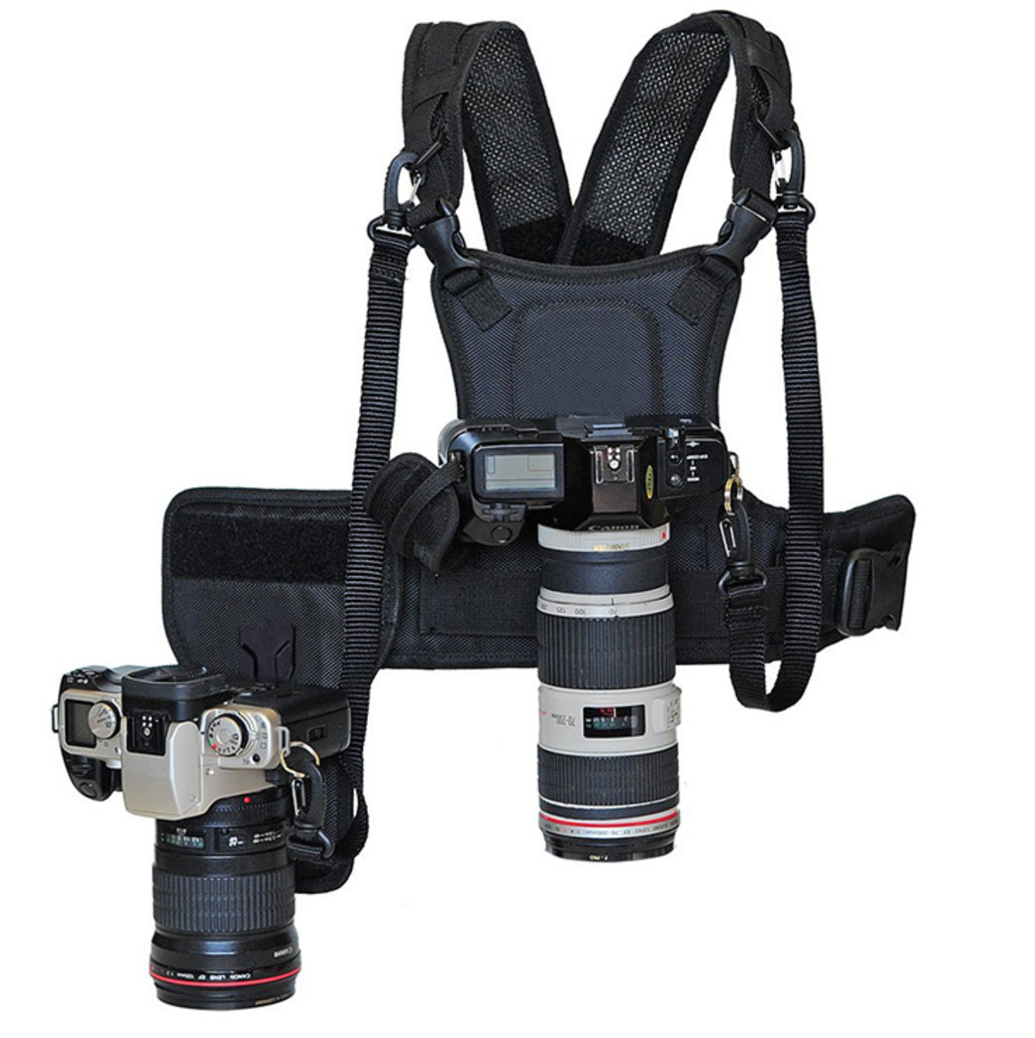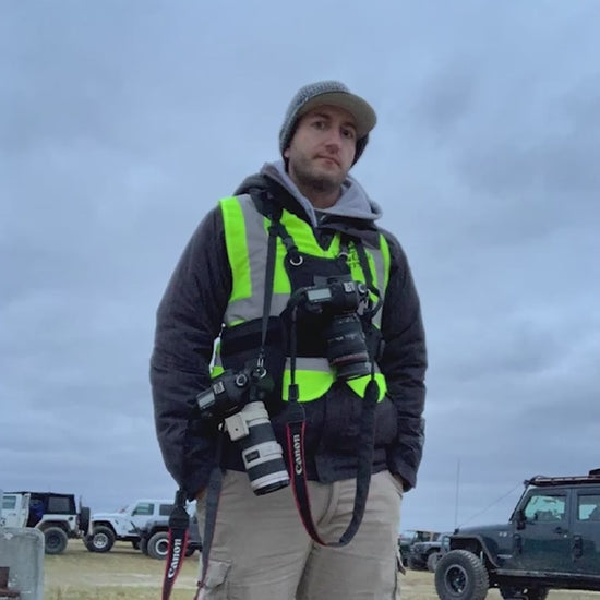 * Dual-Camera Carry System: Hold and switch between two cameras effortlessly during shoots.